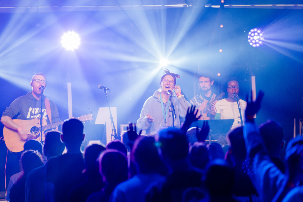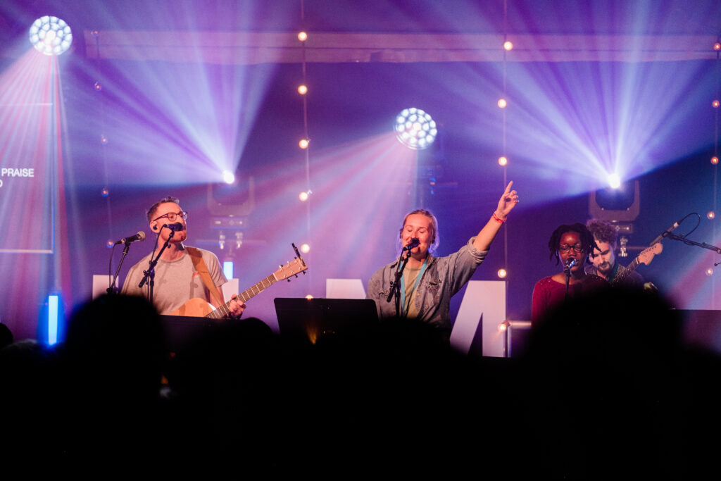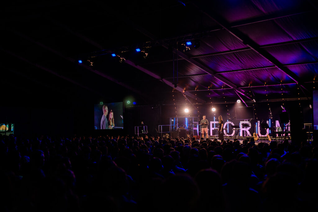 Colour and intensity controllable venue lighting was provided through an array of LEDJ 18T3 floods. These units enabled the creation of evenly distributed venue light, which was used to aid transitions between sections of the conference, with sections of worship being intentionally dimmer, whilst also having the capability to facilitate delegates reading materials from their seats.